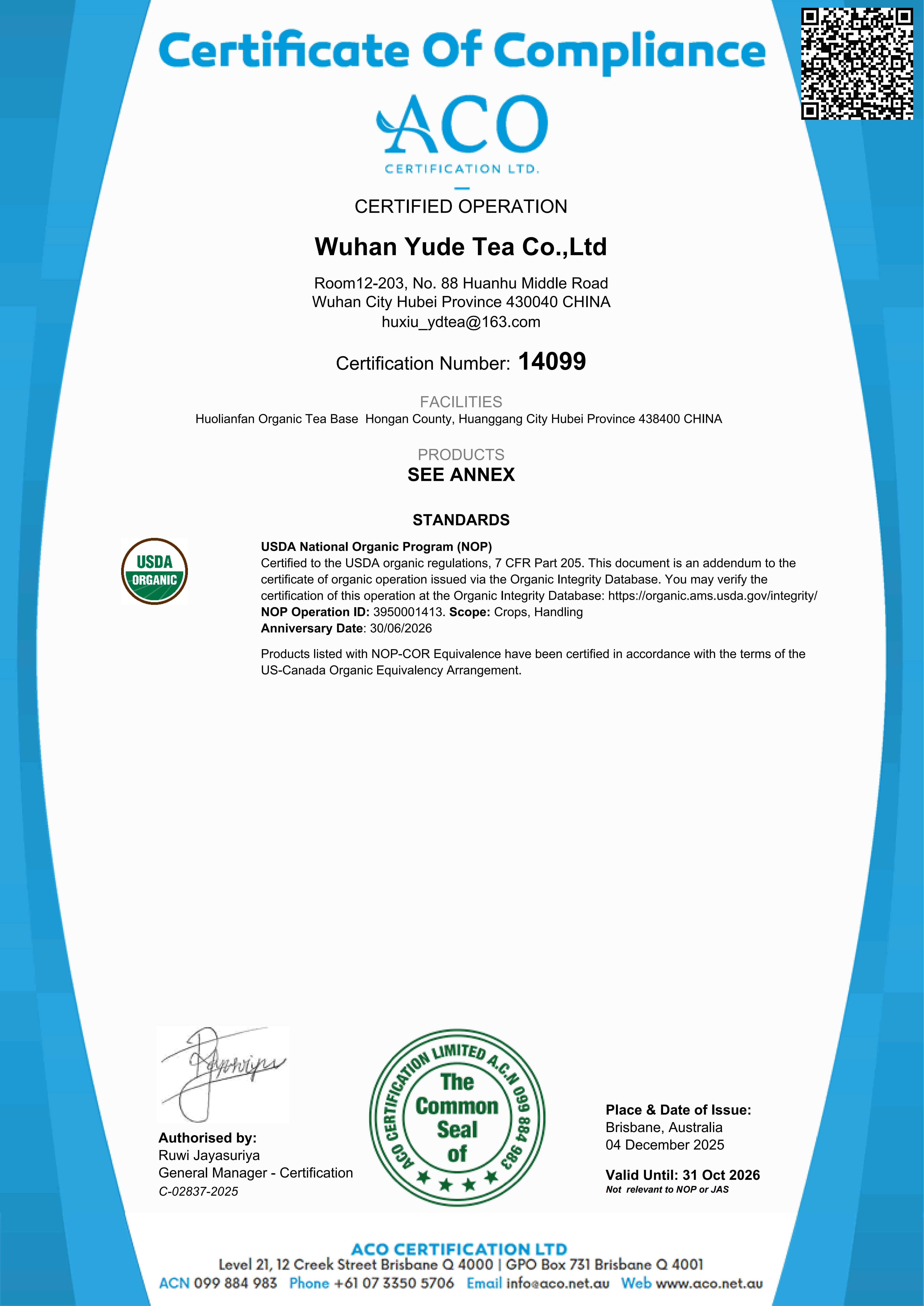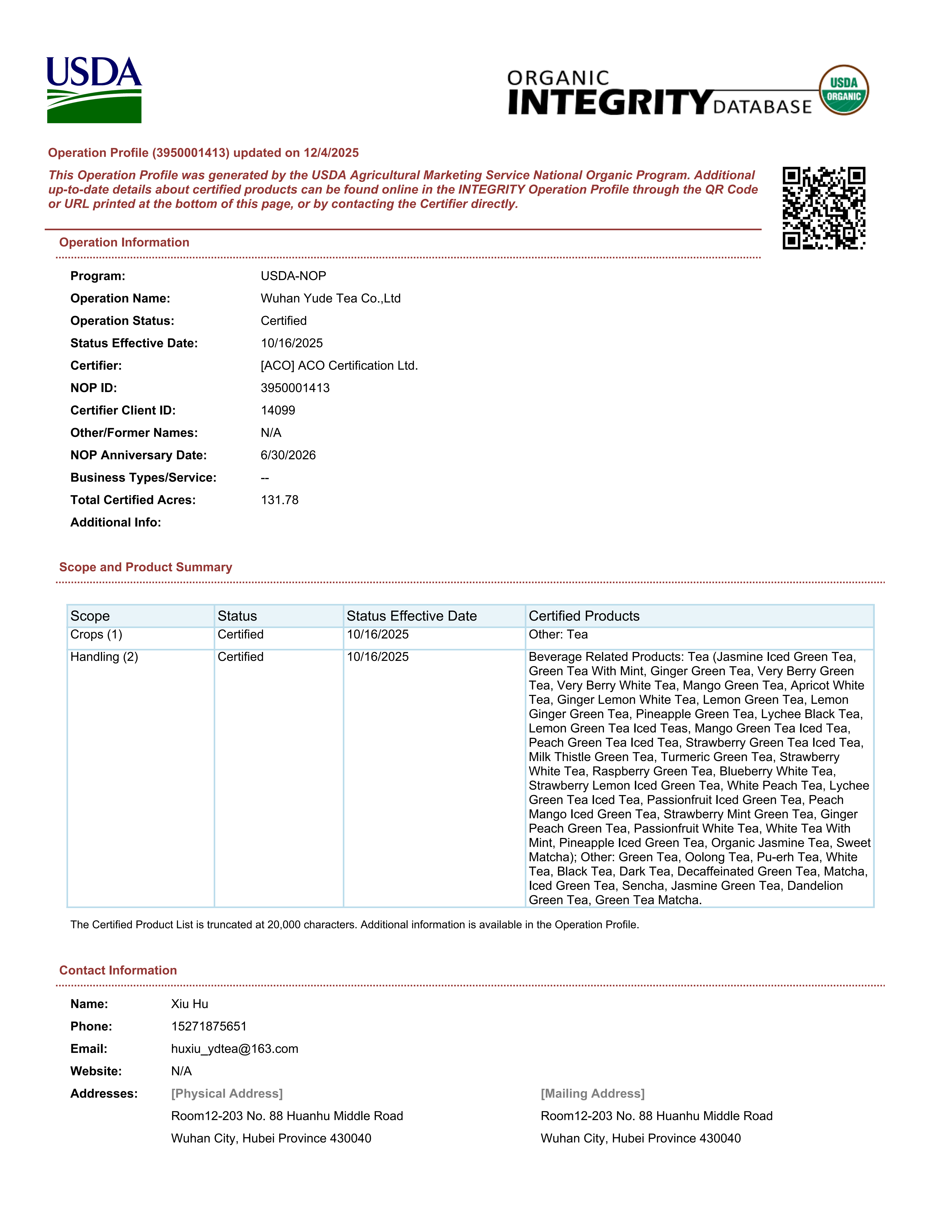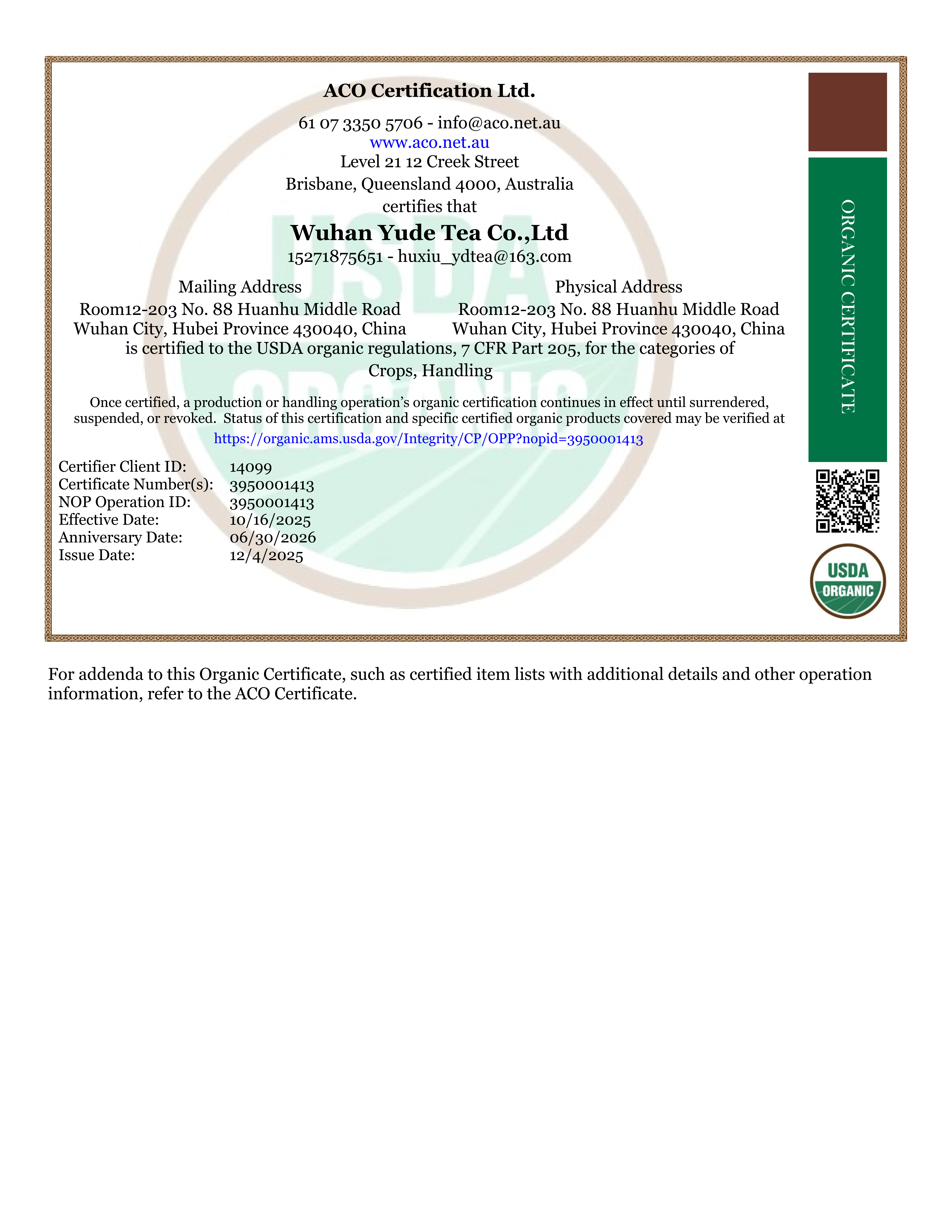 公司创建于2000年,拥有完整、科学、质量管理体系;专业的精英团队;并已通过SC认证、ISO9001/IS022000质量体系认证、德国CERES有机认证,美国FDA注册。公司产品主要出口多个国家和地区,可为客户OEM、ODM加工。